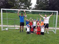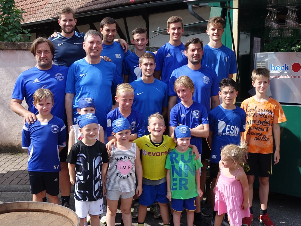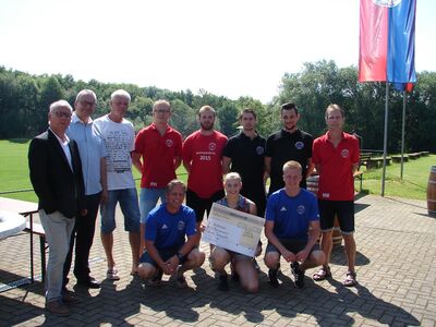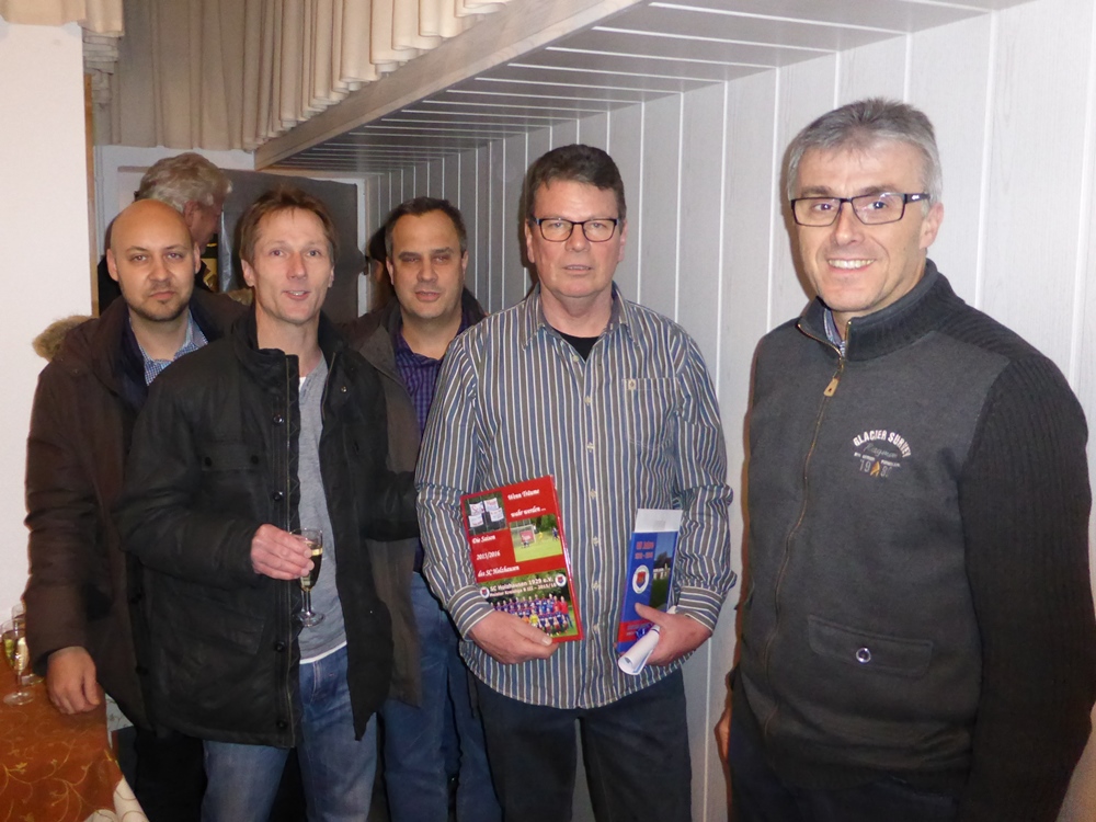 auf dem Bild links hinten Mario Kaiser (Jugendleiter), Björn Freitag, Bernd Schrodi (Förderverein), Michael Koch (Torwarttrainer);
