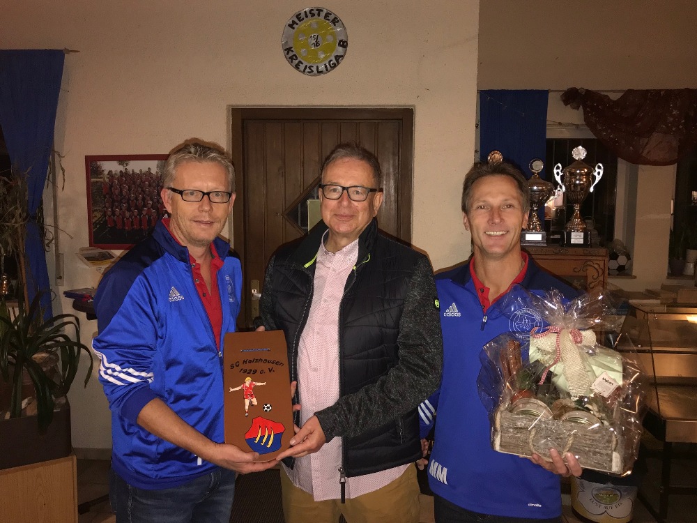 Die Vorsitzenden Bernd Schrodi und Bernd Strobel überbrachte die Grüße und Glückwünsche des Vereins und gratulierten dem rüstigen Rentner und Fan der Holzhauser Aktiven.