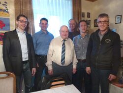 Bürgermeister Helmut Mursa, Ortsvorsteher Rolf Lorenz und die Vereinsvorsitzenden Kurt Fehrenbach, Michael Metzger und Paul Gutmann gratulierten dem rüstigen Senior.