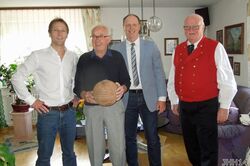 Vor einigen Tagen feierte der langjährige Vorsitzende des Vereins Karl Schlegel seinen 80. Geburtstag, Selbstverständlich überbrachte der Vorsitzende dem ehemaligen Stürmer und Spieler der Meisterelf 1956 und 1964 die Grüße des Vereins. Ein Präsent zu seinem Ehrentag war ein Originalball der WM 1934 (dem Geburtsjahr von Karl) bei welcher Italien den WM Titel holte.