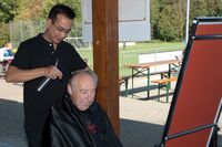 Mit 4 Mitarbeitern aus seinen Friseursalons in Freiburg wurde auf der Clubheim Terrasse Haare geschnitten. Vor und während des Spiels gegen Sasbach konnte sich jedermann einen flotten Haarschnitt machen lassen. Den Preis durfte man selbst bestimmen. Michael Löffler spendete den "erschnittenen" Betrag der Mannschaftskasse der Aktiven. Stolze 220 € kamen zusammen!