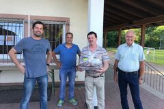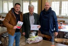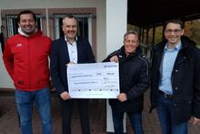 In Anwesenheit von Bürgermeister Helmut Mursa, Vorstandsvorsitzenden Bernd Strobel und Jugendleiter Mario Kaiser übergab Daniel Kalt (zuständig für Kommunale Beziehungen der Netze BW, Rheinhausen) den Spendenscheck.