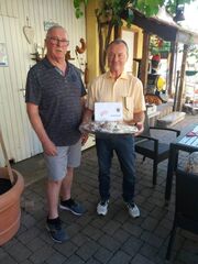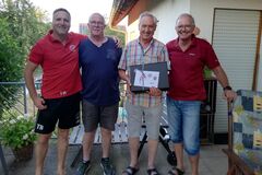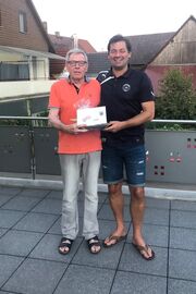 Der stellv. Vorstandsvorsitzende des Fördervereins Bernd Schrodi überbrachte seinem Geddi die Grüße des Radfahrvereins, des Fördervereins und des Sportclubs zu dessen 70. Geburtstag.