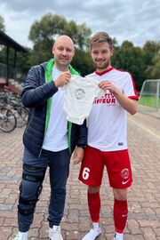 Im Anschluss an den 3:0 Heimsieg gegen den FC Portugiesen Freiburg überreichte Spielführer Moritz Neugebauer unserem stellv. Vorstandsvorsitzenden Philipp Grüninger ein Präsent der Mannschaft.