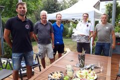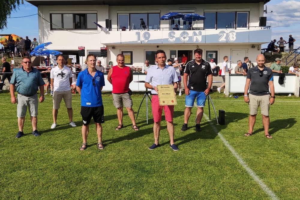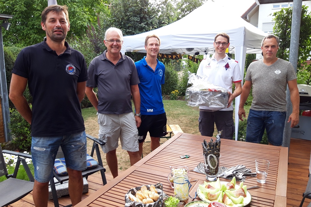 Natürlich waren die Ü 50 Kollegen bei der Feier am "Lieblingsplatz" dabei. Bertold Krieger und Kollegen überbrachten die Grüße und das Präsent des SC H.