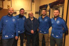 Im Bild Michael Schinkewitz mit Trainer und Spielausschuss des SC H