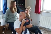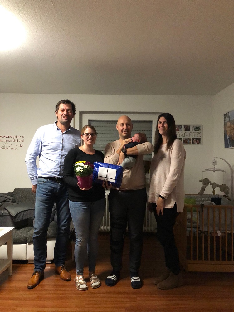 Ben Schwarz ist da. Die Vorsitzenden des Fördervereins gratulierten den glücklichen Eltern Katja und Marco.