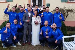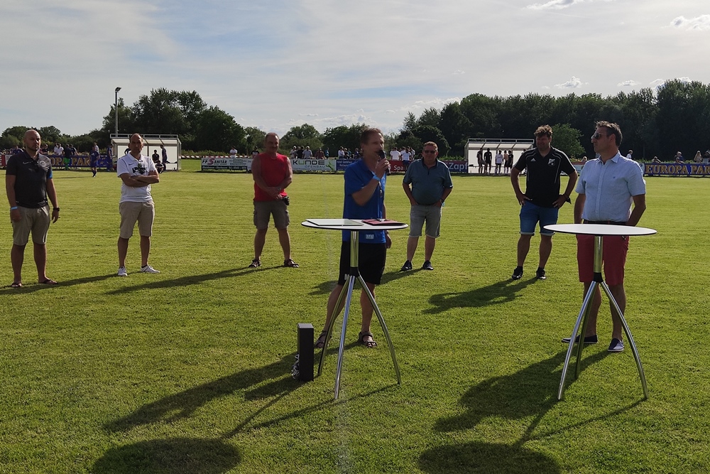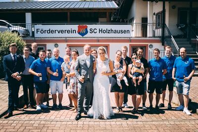 Trauzeuge Simon Kaltenbach organisierte einen Treffpunkt am Holzhauser Sportplatz für die zahlreichen Gratulanten des SC H.