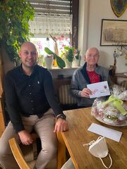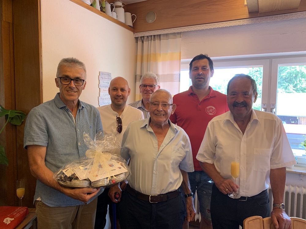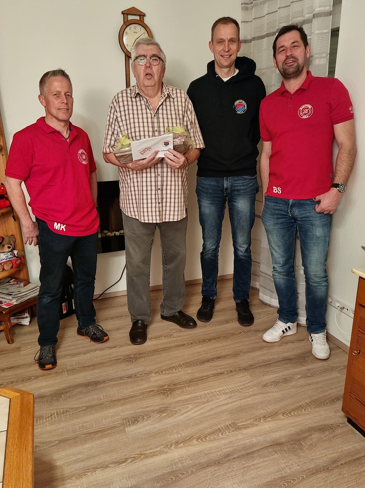 Selbstverständlich überbrachten wir auch hier unsere Grüße und Glückwünsche. Der Jubilar freute sich sehr über den Besuch vom Vorsitzenden des Fördervereins Bernd Strobel und will demnächst auch wieder ein Spiel der Aktiven des SC H besuchen.