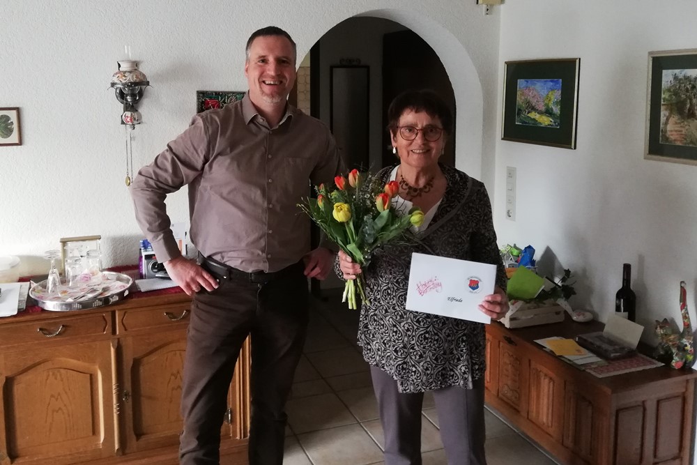 Monika Metzger feierte den 80. Geburtstag und der Ehrenvorsitzende Michael Metzger gratulierte im Namen der Vereinsgemeinschaft seiner Mutter.