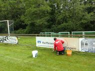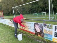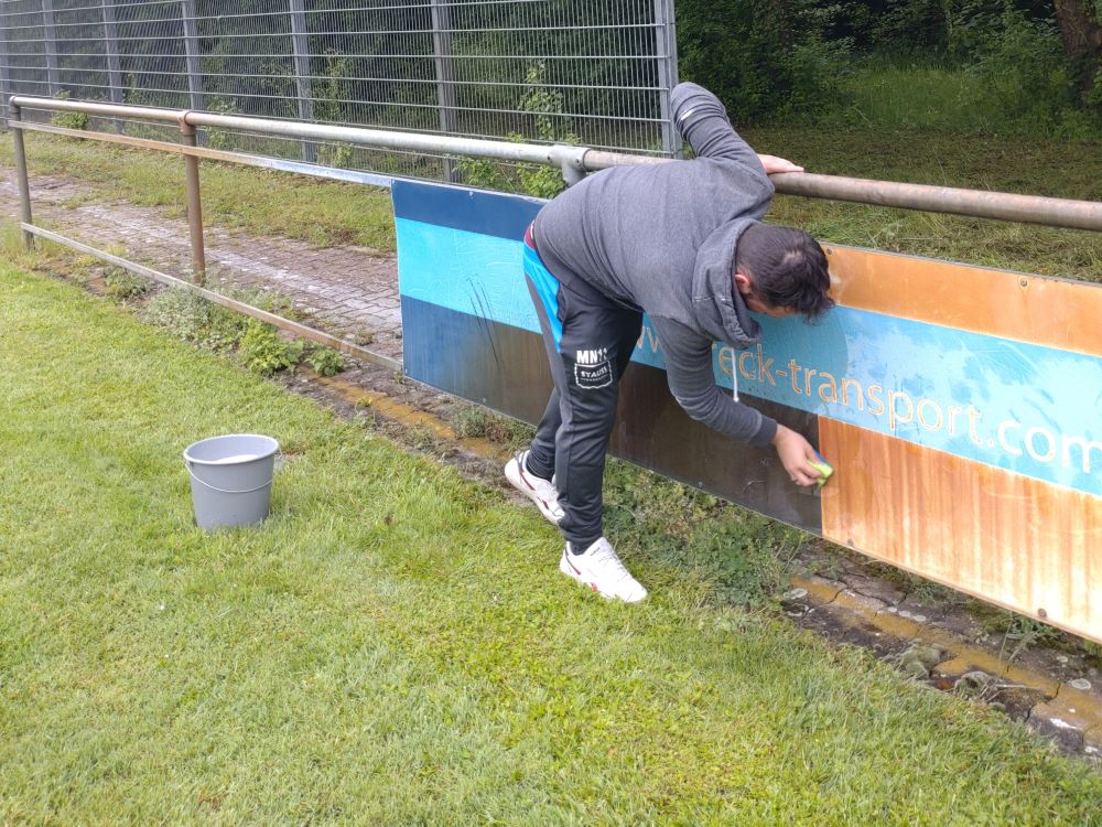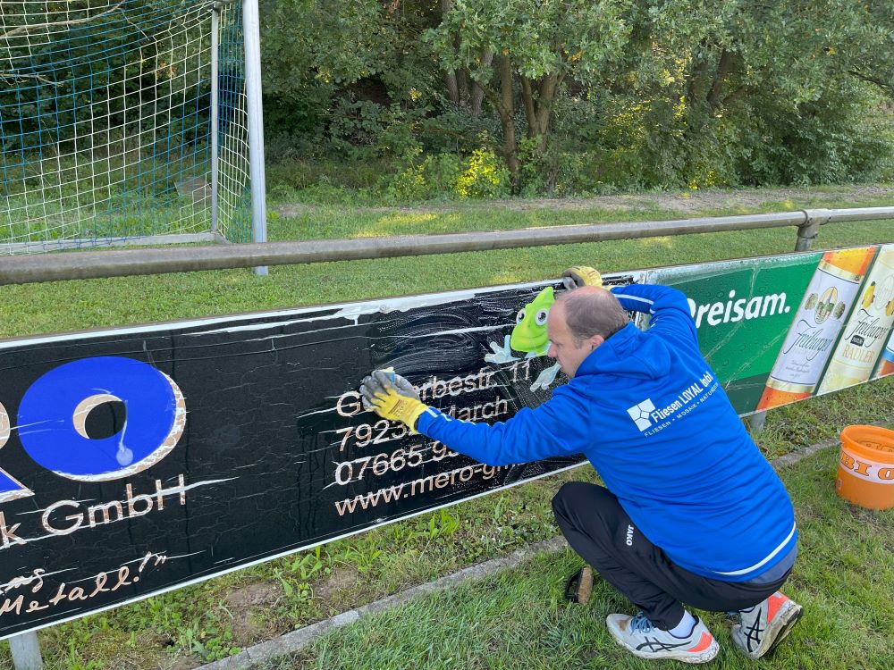Mit viel Einsatz wurden die Werbebanden an unserem Rasenplatz gereinigt, so dass diese bei den Heimspielen der Aktiven am Sonntag gegen den PSV Freiburg wieder in neuem Glanz erstrahlen konnten.