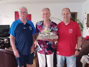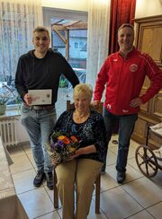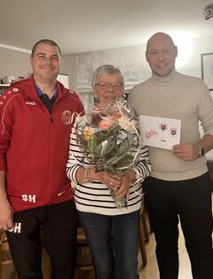 Der stellv. Vorstandsvorsitzende des Fördervereins Sebastian Metzger und SC H Jugendleiter Mario Kaiser überbrachten der langjährigen Unterstützerin und Helferin die Grüße und Glückwünsche wie auch den Dank für die jahrelange tiefe Verbundenheit zum SC H.