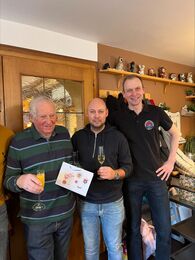 Ehrenvorsitzender Hermann Gebhard, ein ehemaliger Mitspieler von Jürgen und der stellvertretende Jugendleiter Marco Ritt überbrachten die Grüße und Glückwünsche des SC H.