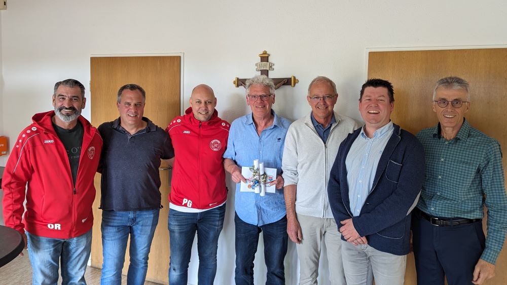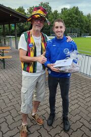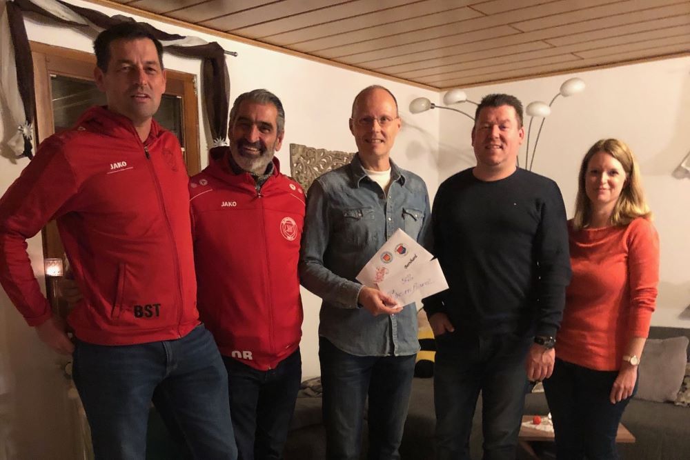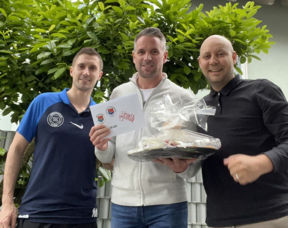 Der Trainer unserer Aktiven wurde 50 Jahre alt. Im Rahmen einer Spielerversammlung übergab der stellv. Vorstandsvorsitzende des Fördervereins Sebastian Metzger ein ganz besonderes Jubiläumspräsent.