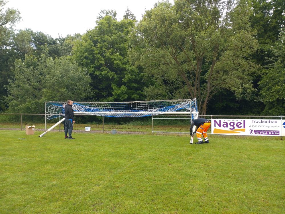 Die Sportanlage des SC H wurde gemeinsam wieder in Schuss gesetzt, die Tore mit neuen Netzen bespannt und die Werbebanden von Schmutz befreit.