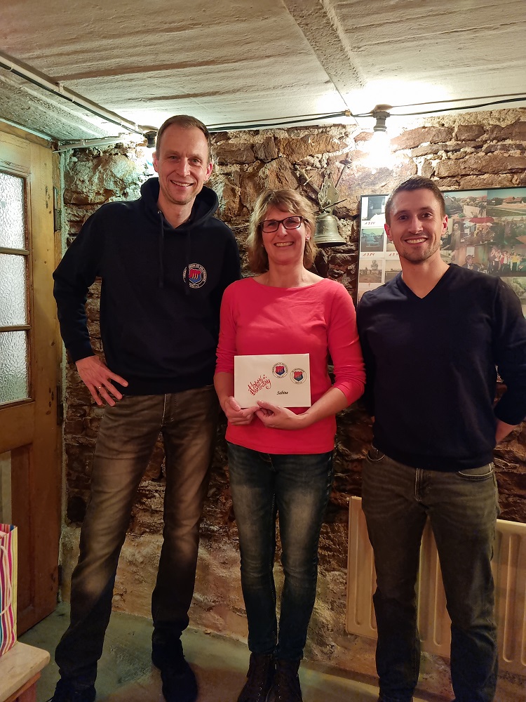 Gefeiert wurde im Stall bei Rosa mit den Fitnessmädels. In Vertretung des Vorstandsvorsitzenden Bernd Strobel überbrachten die Vorsitzenden des Fördervereins Bernd Schrodi und Sebastian Metzger die Grüße und Glückwünsche wie auch den Dank für die jahrelange Tätigkeit als Fitnesstrainerin.