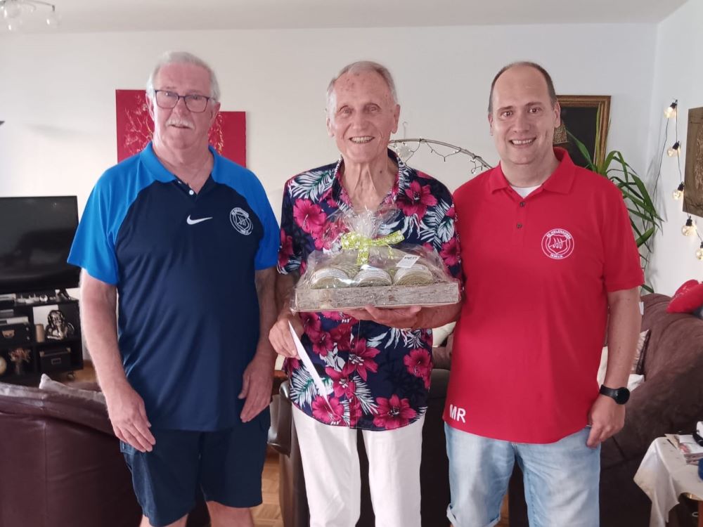 In den ersten Januartagen feierte unser Ehrenmitglied Bernhard Gutmann den 90. Geburtstag. Der Vorsitzende des Musikvereins Paul Gutmann überbrachte die Grüße und Glückwünsche für alle Holzhauser Vereine. Entsprechend auch im Namen des Sportclubs und des Fördervereins.