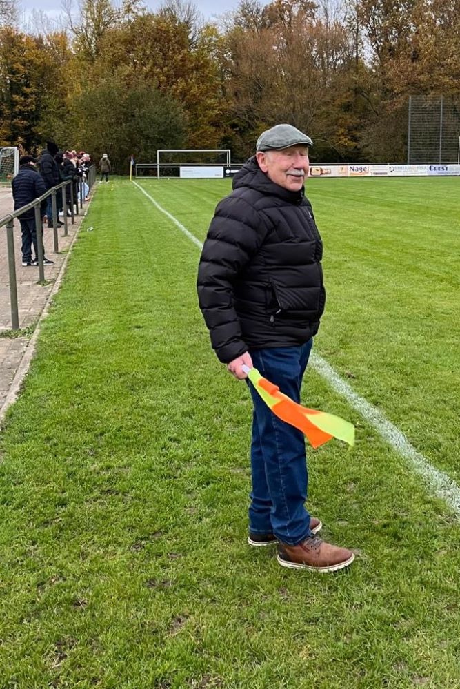 Ehrenmitglied Heinz Waag, mittlerweile 79 Jahre alt, ist sich für keinen Job zu schade und sprang unverzüglich als Schiedsrichterassistent ein, als Kompetenz an der Seitenlinie beim Spiel gegen die Portugiesen gesucht wurde.