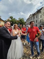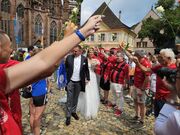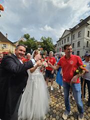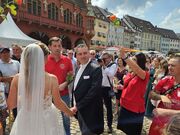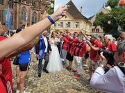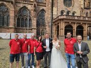 Der Sportclub Holzhausen und 35 andere Vereine haben Spalier mit über 70 Fussballerinen und Fussballer gestellt. Ein toller Rahmen für das Brautpaar, welches im Münster in Freiburg getraut wurden.
