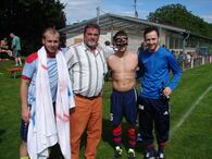 Hier einige der Bilder mit Peter. Die ersten drei sind beschriftet, die weiteren zeigen Peter bei der Meisterschaft 2016 mit den damaligen Spielführern Nico Karlin und Sebastian Metzger, beim Jubiläum des Fördervereins und Übergabe einer Ballspende.- Das letzte Bild zeigt Peter mit dem Trainer der Aktiven im Jahr 1979 Jürgen Marek der beim FFC Freiburg als Profi spielte und zuvor bei Bayern München zusammen mit der 74er Mannschaft spielte.