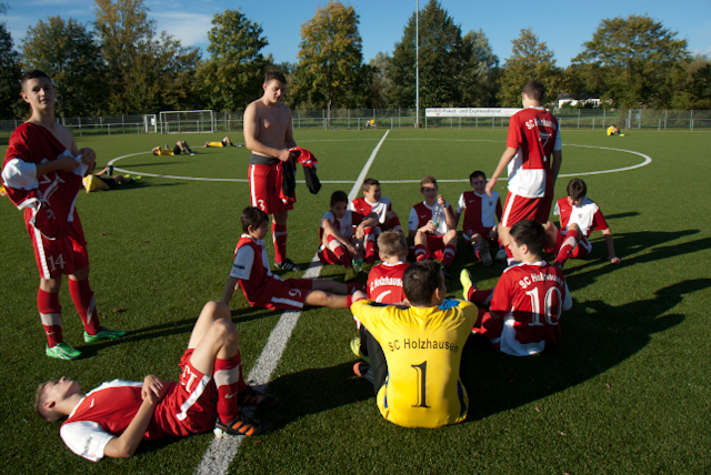 Samstag, der 13.Oktober war es soweit. Für alle überraschend, war an diesem Tag die Disziplin, mit der die Mannschaft der SG Prechtal Paroli bot, beispielhaft. Alle hielten ihre Positionen, bewahrten Ruhe im Spiel und Abspiel und waren von einer nicht gekannten Laufbereitschaft. So hatten wir nach mehr als einer halben Stunde immer noch kein Gegentor, was zu diesem Zeitpunkt Rekord war. Keiner war unaufmerksam und sollte doch ein Spieler der SG Prechtal an seinem Gegenspieler vorbeikommen, war ein Spieler des SC Holzhausen, da, und half. Das Mittelfeld rückte fast immer nach und so waren die Räume für unsere Gegner sowieso eng. Was aber ganz anders zu allen bisherigen Spielen war, die Mannschaft spielte nach vorne. Es wurden keine blinden Pässe nach vorne gedroschen, nein, man sucht den Mitspieler und hatte mehr als einmal klasse Kombinationen, vor allem über die Außen.