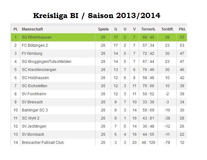 In der nachfolgenden Tabelle ist das Spiel der nichtangetretenen Wyhler noch nicht berücksichtigt. Dieses sollte mit 3:0 für uns gewertet werden.
