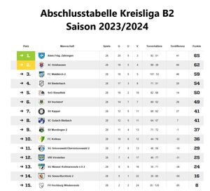 Mit dem 4:0 Derbysieg gegen den SV Hochdorf am 28. Spieltag schaffte man das nicht für möglich geglaubte und erreichte den Tabellenplatz 2 Punktgleich mit dem FC Waldkirch und einem besseren Torverhältnis von 1 Tor Vorsprung.