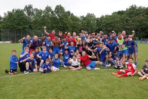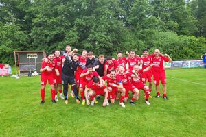Nach dem Schlusspfiff folgten unbeschreiblich Emotionen und danach feierte man ausgelassen beim gemeinsamen Saisonabschluss das nicht für möglich gehaltenen erreichen der Relegation! Außerdem bedankte sich das Team bei den Unterstützern, Irma Hettich (Trikotwäsche) und Helmut Hettich (Platzwart).