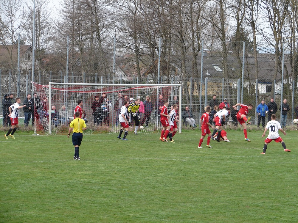 Erst jetzt schafften es Heimelf sich ans Aluminium heranzutasten und hatten mit einem Pfostenschuss und einem von Keeper Schrodi abgelenkten Schuss an die Latte etwas Pech im Abschluss.