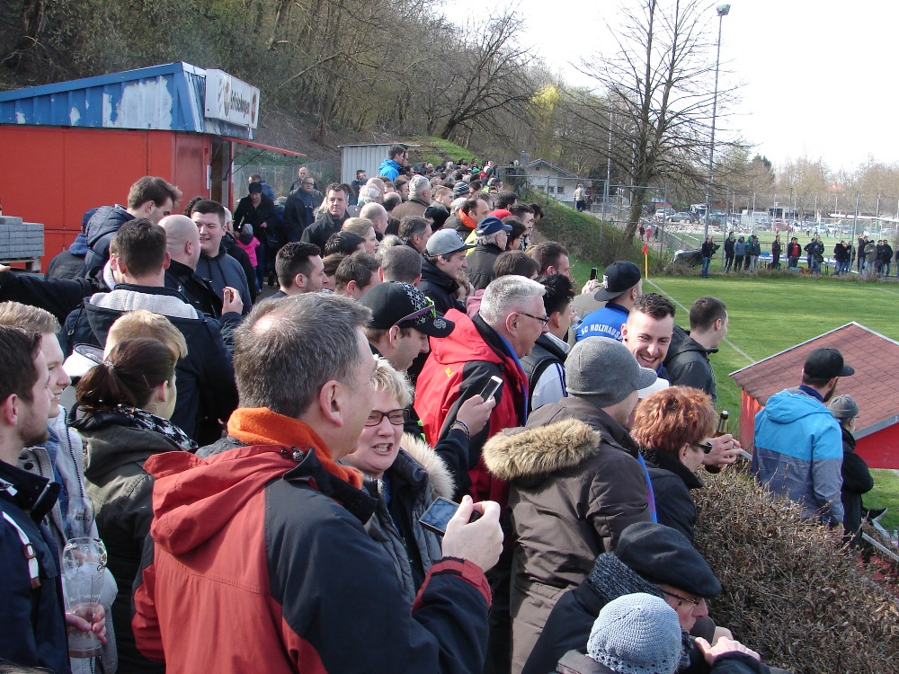 Holzhausen immer wieder über Jusufi Leutrim und Kevin Hauck im Mittelfeld angetrieben kämpfte um jeden Ball und schaffte immer wieder für Entlastung, auch wenn der Heimtorhüter der am wenigsten beschäftigste Spieler des Matches war. Lautstark forderten die ca. 200 mitgereisten Fans aus Holzhausen einen Elfmeterpfiff als Landerer im 16er zu Fall kam, der souverän leitende Schiedsrichter Mirko Kozul und seine Assistenten Julian Büche und Mark Armbrust ließen jedoch zu Recht weiterlaufen. Kurz vor der Pause dann ein langer Einwurf von Kapitän Sebastian Metzger auf Landerer der zum agilen Waldemar Maas welcher irgendwie mit einer verunglückten Bogenlampe den Ball, zum nicht für möglich gehaltenen Führungstreffer, im Netz unterbringen konnte.