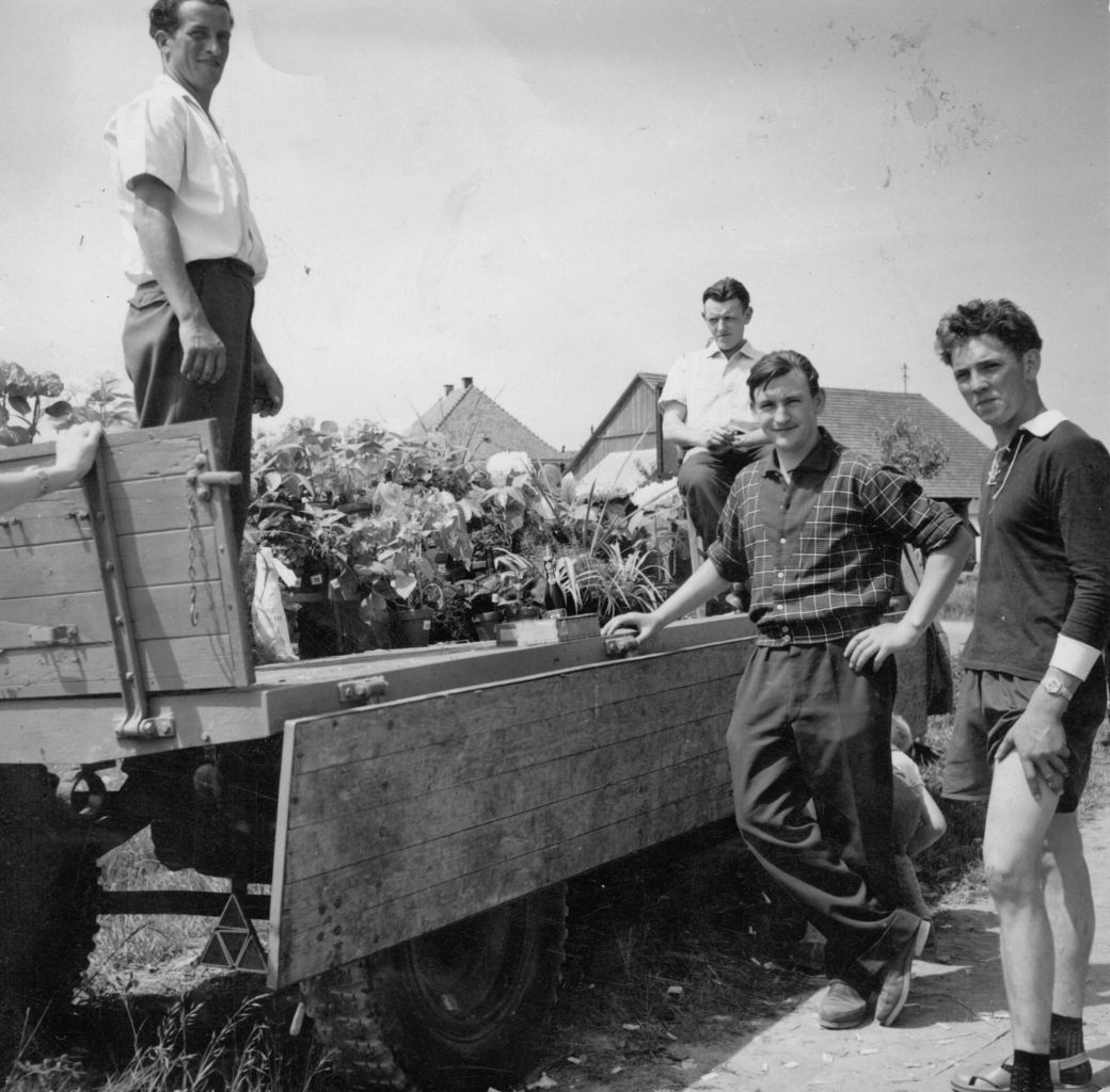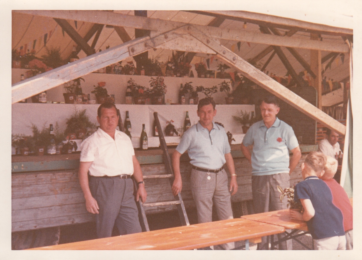Bild 3, Gabentempel (So nannte man damals eine Tombola) 1971 auf dem Sportgelände, vermutlich bei einem Fussballturnier. von links: Bernhard Hettich, Albert Schweizer, Otto Schill, Erwin Köpfer;