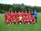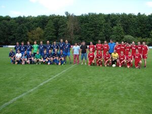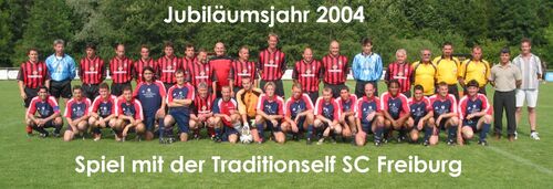 Hier die Beiden beim Spiel im Jubiläumsjahr gegen die SC Traditionself. Oliver Rath links unten als Spielführer, ganz rechts unten Bernd Strobel. In der hinteren Reihe Joachim Löw.