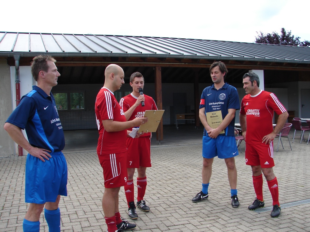 Selbstverständlich konnten sich die beiden Geehrten auch selbst jeweils doppelt in die Torschützenliste eintragen ehe sie unter allgemeinem Applaus kurz vor Ende der Begegnung ausgewechselt wurden. Wenige Augenblicke später wurde das Spiel vom souveränen Schiedsrichter abgepfiffen.