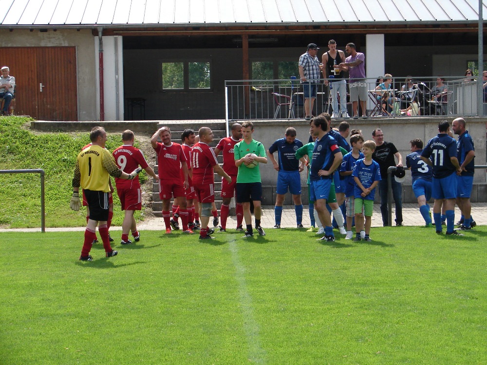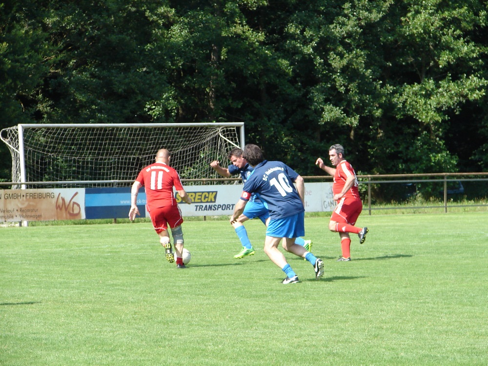 Im anschließenden Kick bei sommerlichem Wetter kamen auch die zahlreichen Zuschauer auf Ihre Kosten. Die zum Teil rüstigen AH Spieler zeigten eine ansehnliche Partie und tolle Spielzüge.
