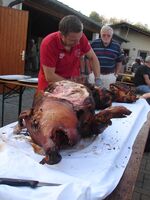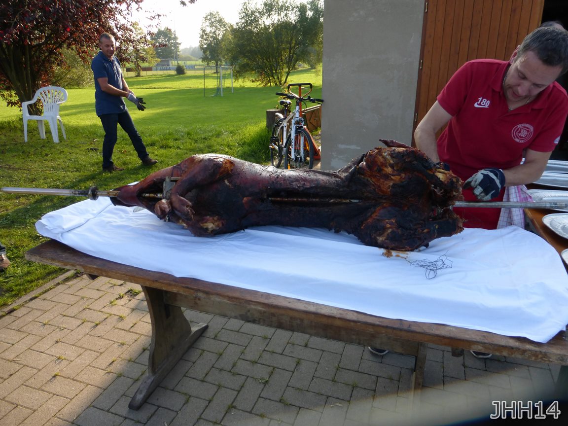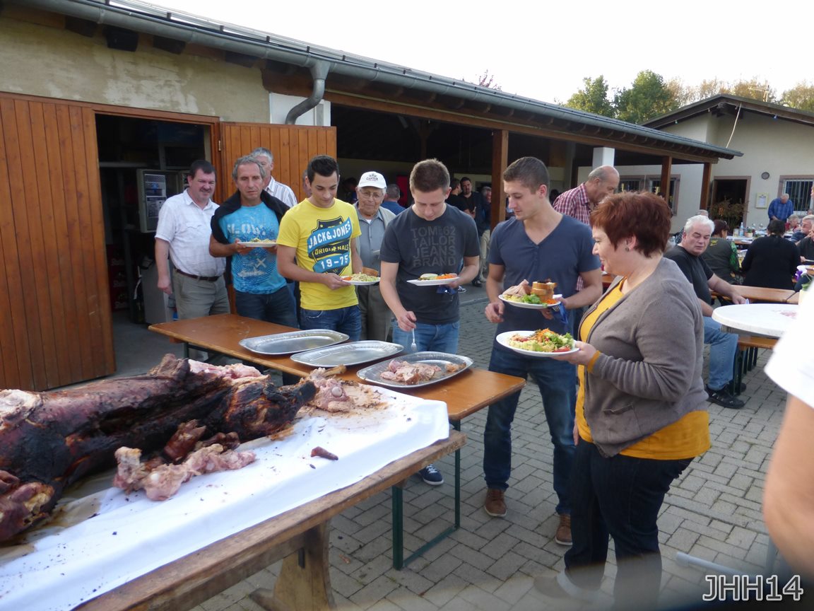 Als besonderes Highlight wurde dieses Jahr von Michel ein Spanferkel am offenen Feuer gegrillt. Dazu ein tolles Salatbuffet. Ein toller Tag für alle Ehrenmitglieder und Helfer des Vereins.