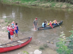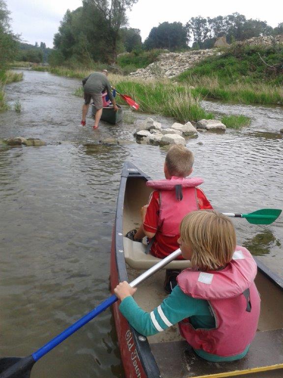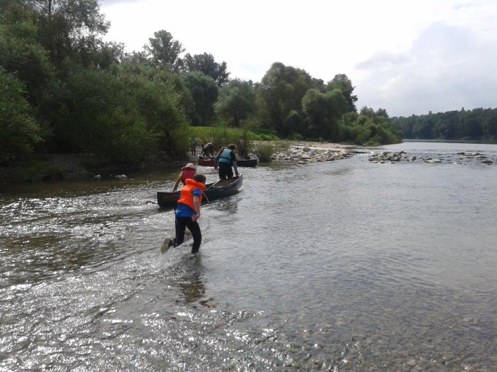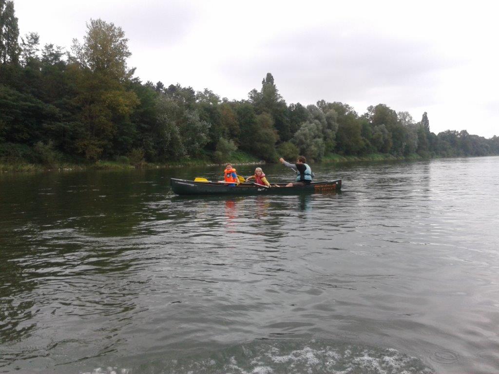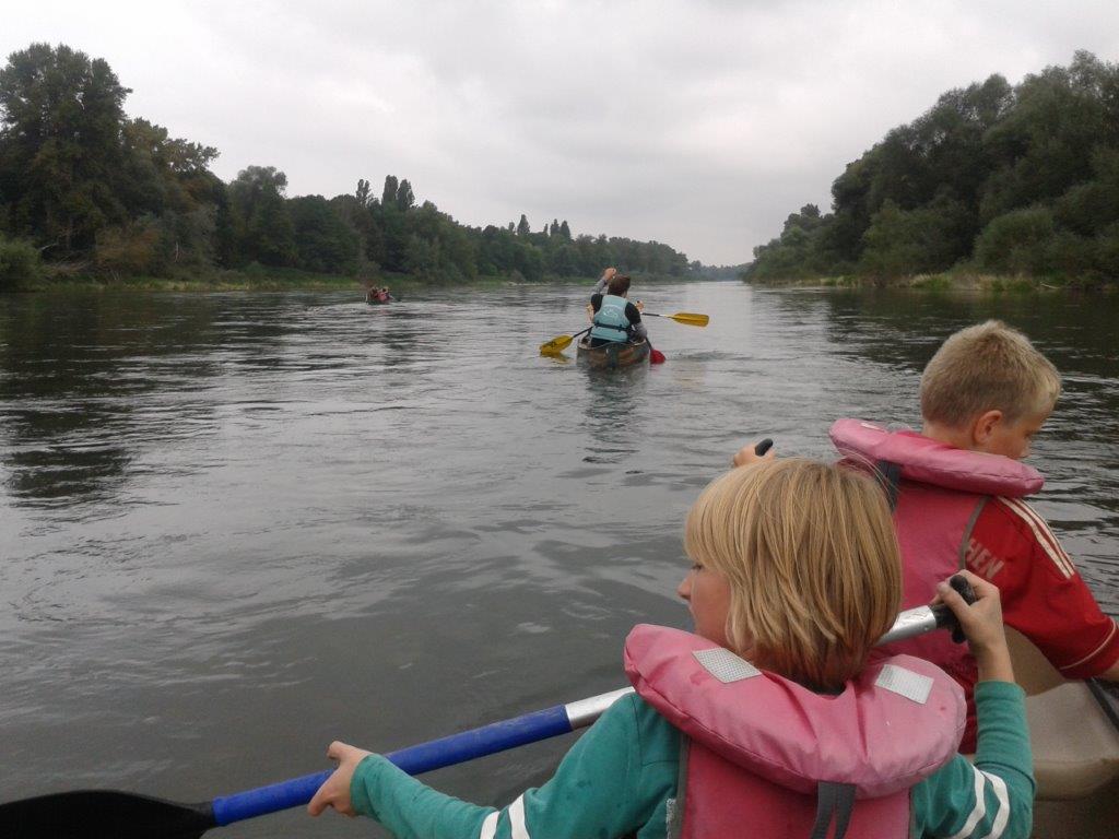 Dort angekommen hieß es erst einmal die Kanu zu Wasser zu lassen und die Jungs „wasserfest“ zu machen. Unter der Führung des Guide’s Wolfgang Futterer ging es dann in drei Kanu den Altrhein hinunter. Während der knapp 90 minütigen Fahrt galt es mehrere kleine „Stromschnellen“ sowie zuletzt eine doch heftigere Variante zu meistern. Unterwegs bot sich natürlich auch noch die Gelegenheit, die „feindlichen Bootsbesatzungen“ nass zu spritzen und ein paar Schwäne bei ihrem mühevollen Start, und dem damit verbundenen Lauf über das Wasser, zu beobachten.
