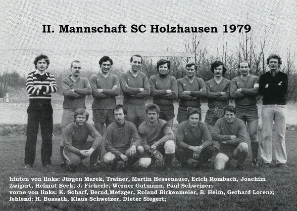 Hier ein Bild unserer ersten Mannschaft am Vereinsjubiläum im Jahr 1979.