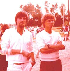 Peter Siebold (links) damals Spielausschuss und Jürgen Marek damaliger Trainer des SC Holzhausen am Grümpelturnier im Jahr 1979.