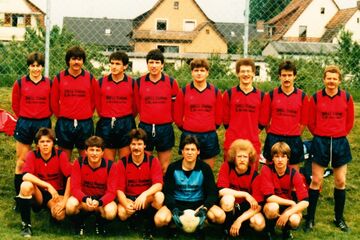 Hier ein Bild unserer ersten Mannschaft bei einem Auswärtsspiel in Wasenweiler. Vermutlich datiert das Bild aus dem Jahr 1985. Ein Großteil der späteren Meistermannschaft war hier dabei und gespielt wurde auch bereits in den späteren Meistertrikots.