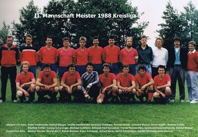 Die II. Mannschaft, mit einigen ehemaligen Spielern aus der Ersten der Meistermannschaft 1986 und Stürmer Thomas Heidiri, konnte die Meisterschaft in der B Klasse feiern.