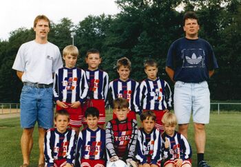 Dieses Bild der F Jugend stammt vom Mai 1998. Vermutlich aufgenommen beim Jugendturnier in Reute. Damals trug man noch einen Oberlippenbart (Schnauzer).