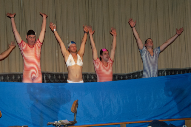 Die Guggemusik Kruezsteinguggis aus Oberried heizte mit ihrem Auftritt dem Publikum ein bevor die Synchronschwimmer und Schwimmerinnen des Musikvereins Ihren Beitrag zum Besten gaben und die Lacher auf ihrer Seite hatten. Die 3 Tenöre der Alten Herren des SC H begeisterten das Publikum ebenso wie die Monster-Ladies, dieses erfreute sich über entsprechende Zugaben der Akteure.
