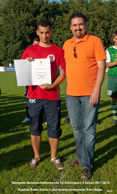 Vor dem Pokalspiel der I. Mannschaft gegen Heuweiler überbrachte der Bezirksvorsitzende des Bezirks Freiburg Arno Heger die Urkunde zur Meisterschaft 2011/2012 der II. Mannschaft der Kreisliga CI.