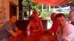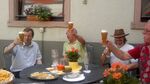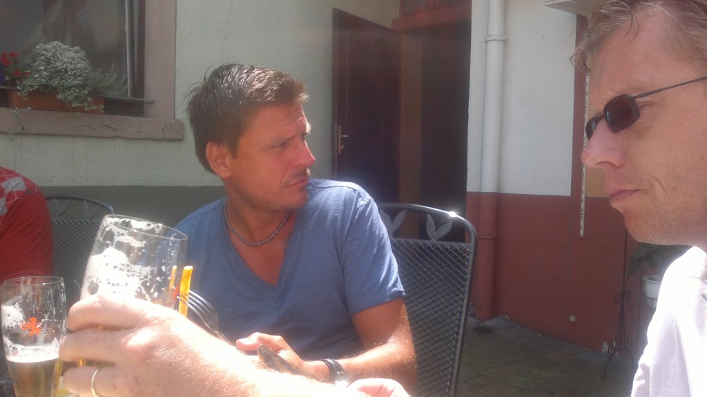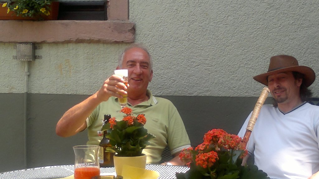 Nachdem die Fachsimpelei jedoch einiges an Zeit in Anspruch genommen hatte musste man sich, mit dem Wissen den Zug nach Freiburg verpasst zu haben, auf den Fußmarsch zurück nach Elzach machen. In Elzach wurde dann das dort traditionelle „Hafenfest“ bereits um 17.00 Uhr (statt 19.00 Uhr) durch Emmes eröffnet, so dass sich die Holzhausener Gesandtschaft wiederum genötigt sah ein Löwenbier zu konsumieren.