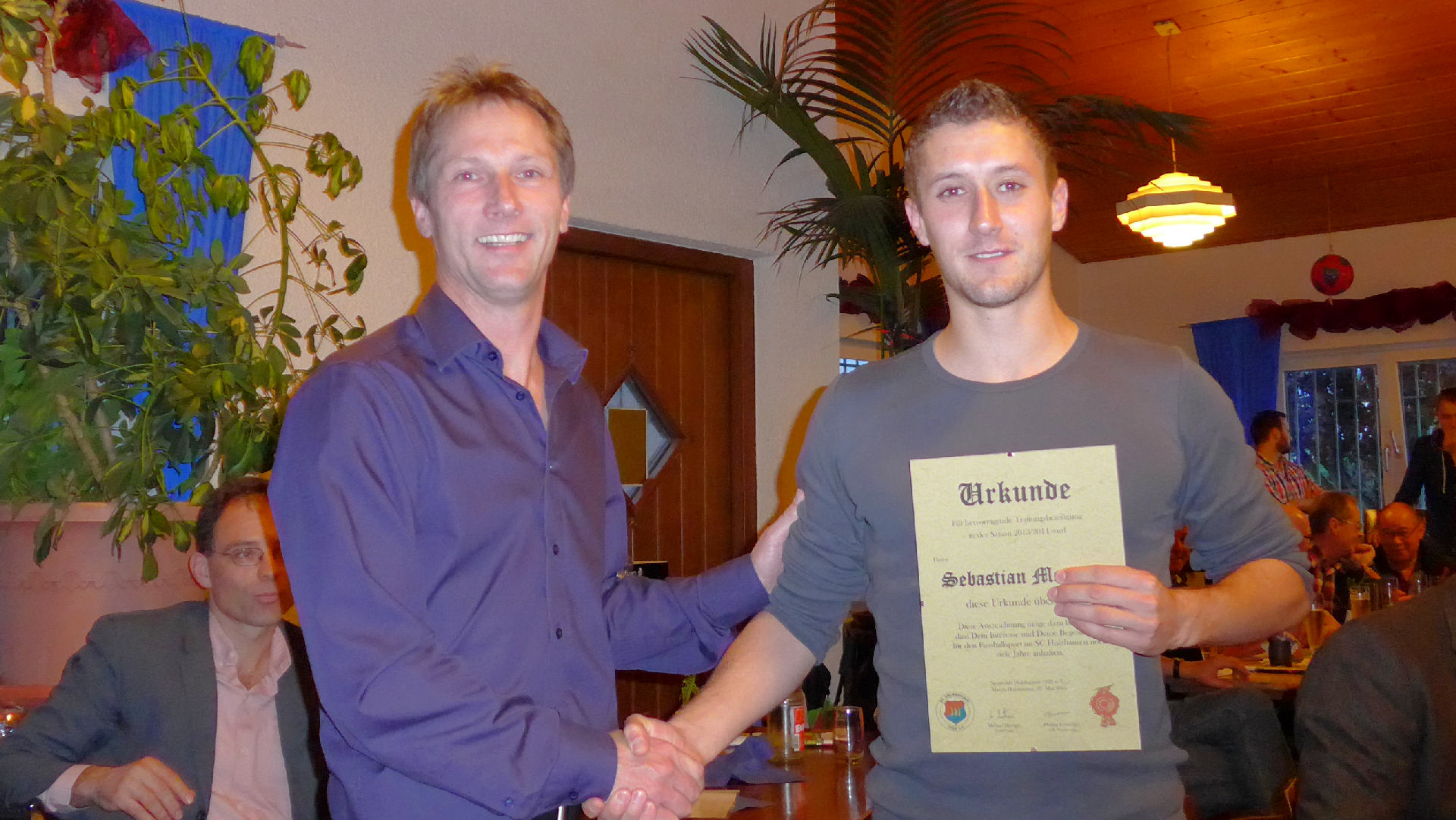 Sebastian Metzger (I. Mannschaft) für großen Trainingsfleiß in der Saison 2013/2014.