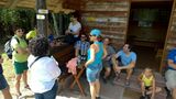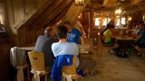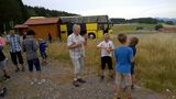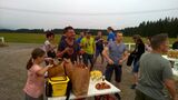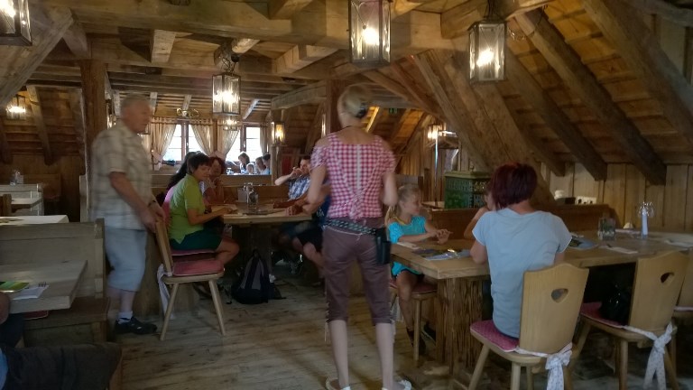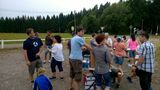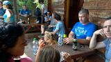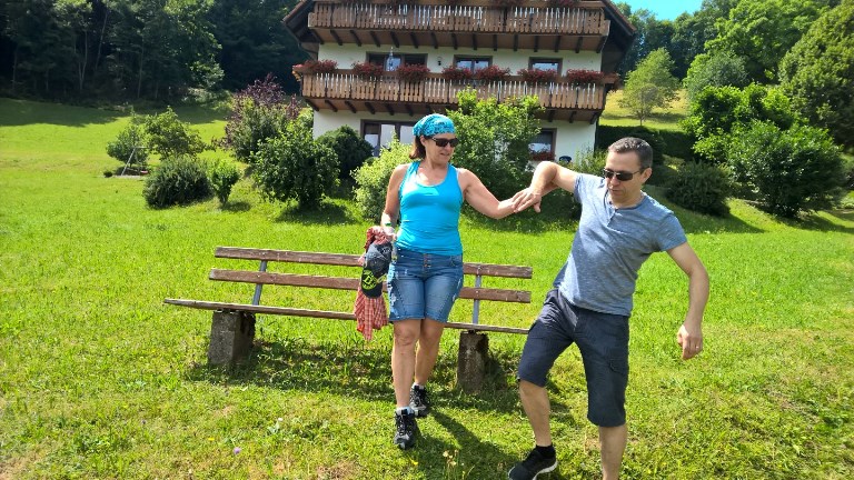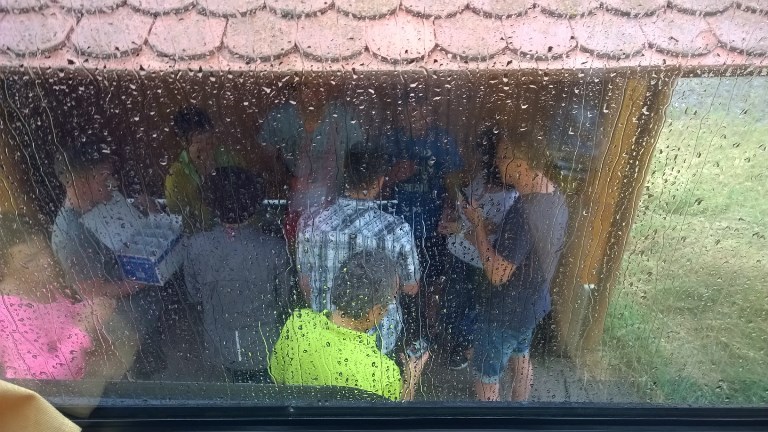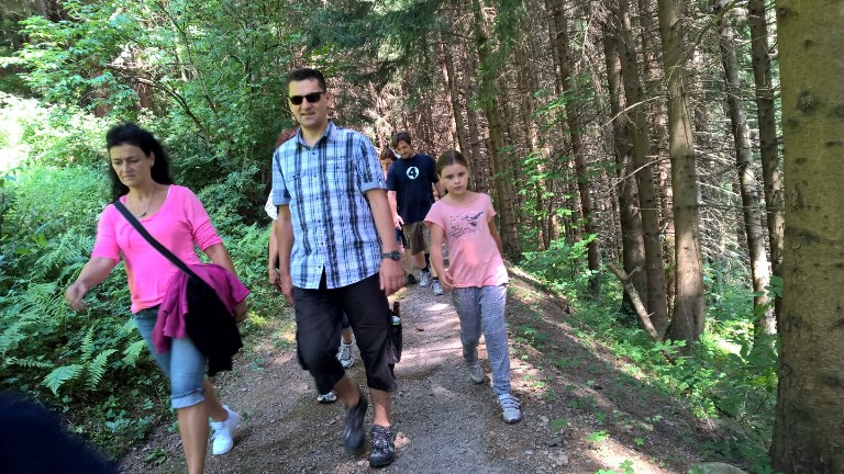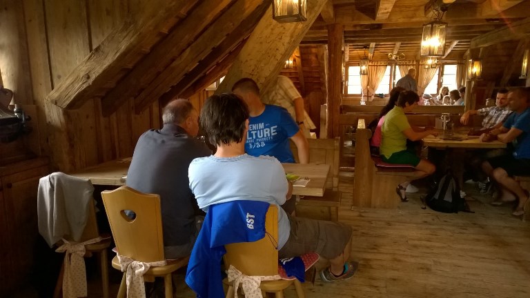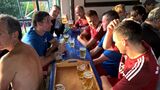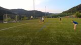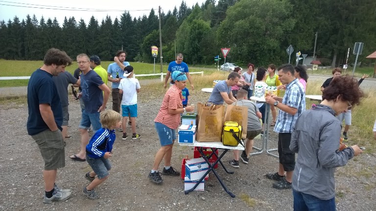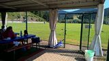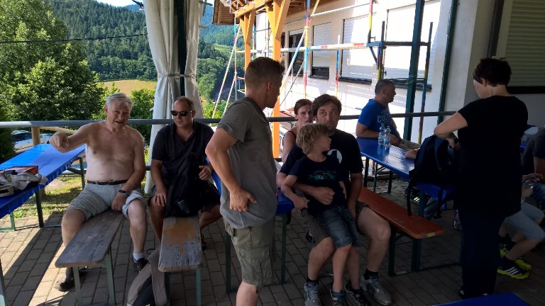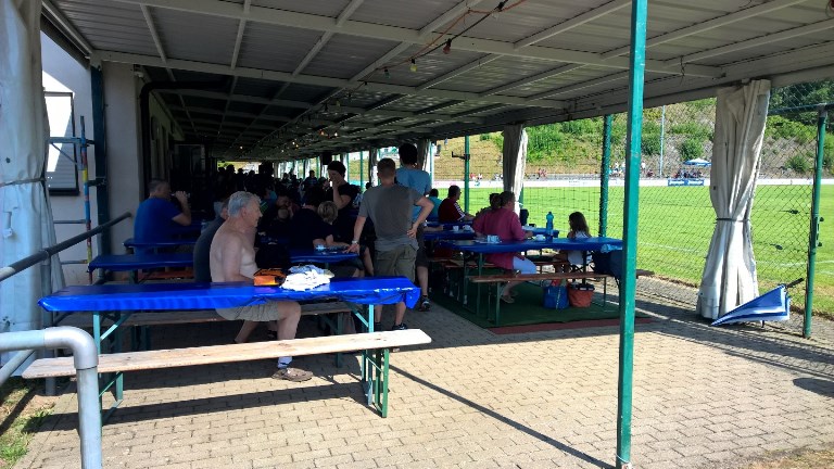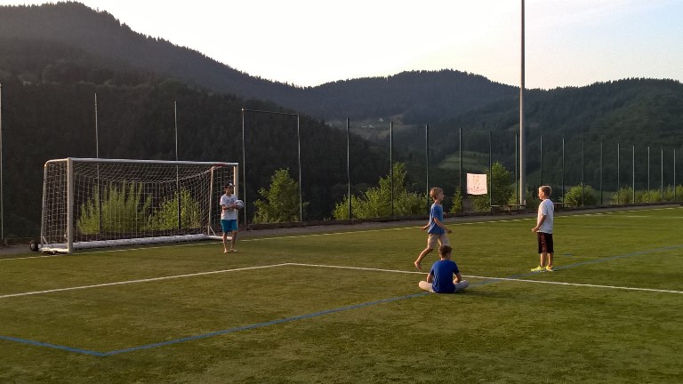 Somit machte man sich mit dem Bus weiter in Richtung Bad Peterstal. Gegen 12.15 Uhr traf man dann an der „Renchtalhütte“ ein, wo das Mittagessen eingenommen wurde. Während dieser Zeit regnete es weiterhin oft mehr und mal weniger, weshalb die Gefahr bestand, dass der der nächste geplante Programmpunkt, die Wanderung zum Sportplatz Bad Peterstal, wiederum dem Wetter zum Opfer fällt. Nichts desto trotz machte man sich um 14.30 Uhr auf den Weg per pedes gen Sportplatz. Ab diesem Moment war das Wetter unser bester Freund. Der Regen verzog sich und die Sonne kam immer mehr zum Vorschein. So kam man dann nicht nur gut gelaunt, sondern auch entsprechend verschwitzt und durstig auf dem Sportgelände in Bad Peterstal an.