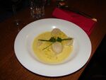 Als Vorspeise war eine französische Zweibelsuppe geboten, dann ein Feldsalat mit Walnüssen und anschließend Jakobsmuscheln in Safransoße. Als Hauptspeise gab es Kalbsfilet mit Morchelrahmsauce. Zum Dessert wurde eine Käseplatte, Creme brülée und eine mousse au chocolat gereicht.