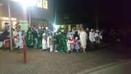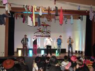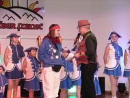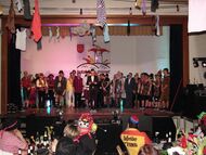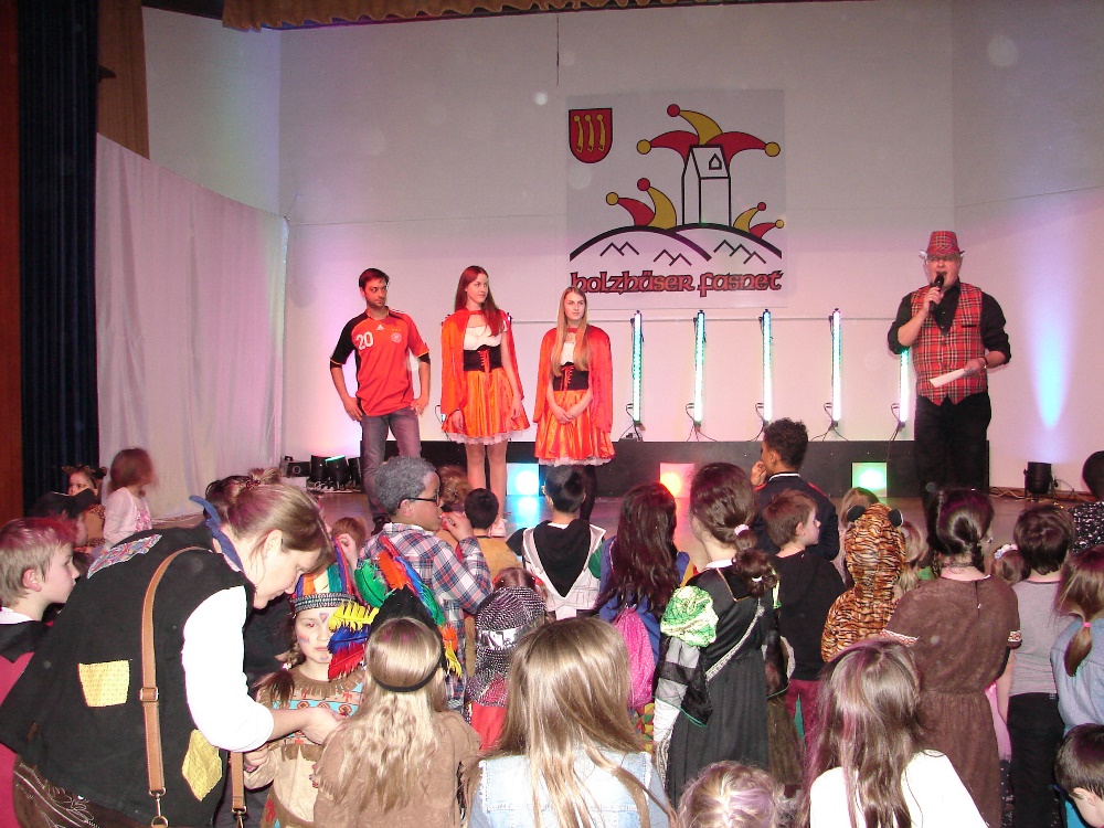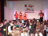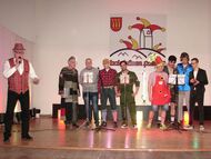 Der Moderator Johannes Schmidt konnte zahlreiche Gäste auf der Bühne begrüßen. So die vier Marcher Narrenzünfte, die Näbelhexe aus Reute, den Förderverein Kindergarten und Grundschule Holzhausen mit einem Puppentheater, Las Luces Negras und die Kindergarde Blau-Weiß aus Emmendingen welche zum ersten Mal zu Gast war und das Spektakel bereicherte. Die Kinder durften sich über Unmengen von Güzele freuen und eine schier endlose Polonaise bewegte sich durch die Halle.