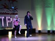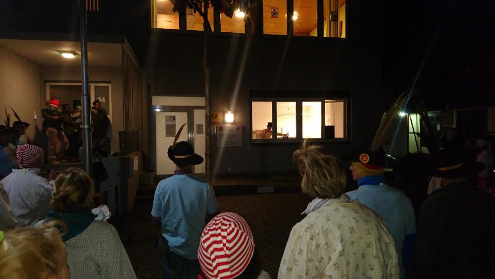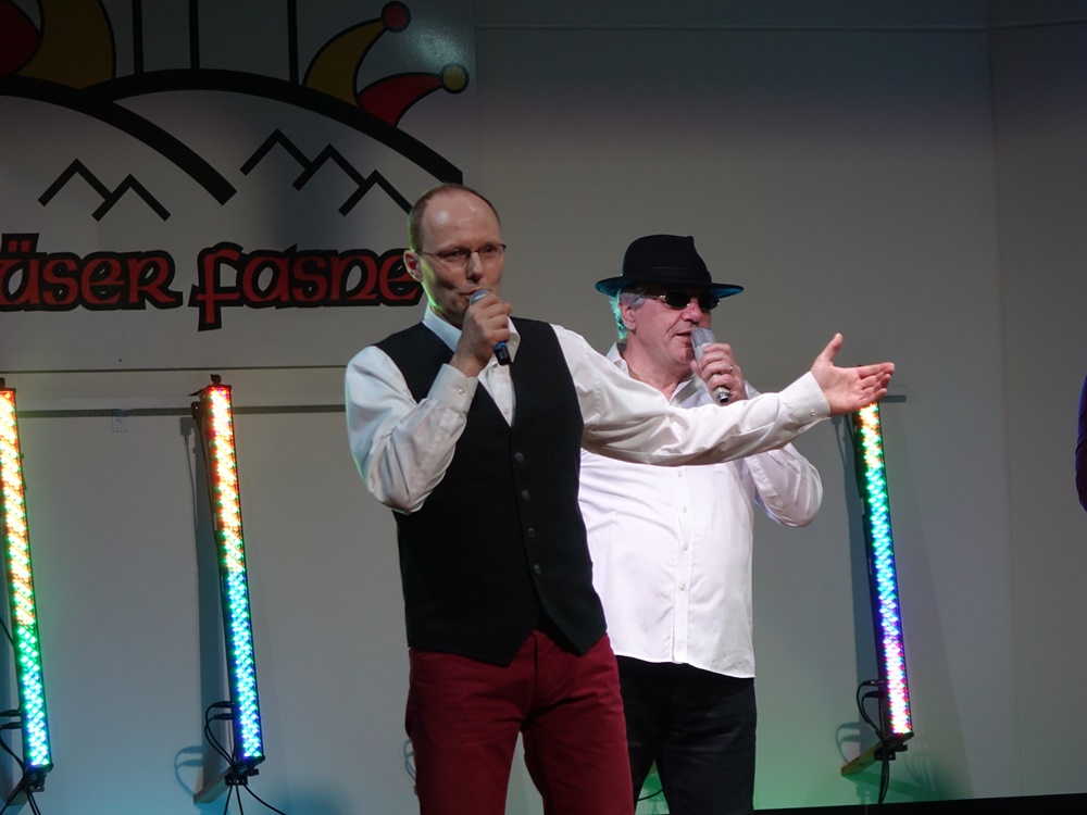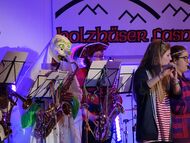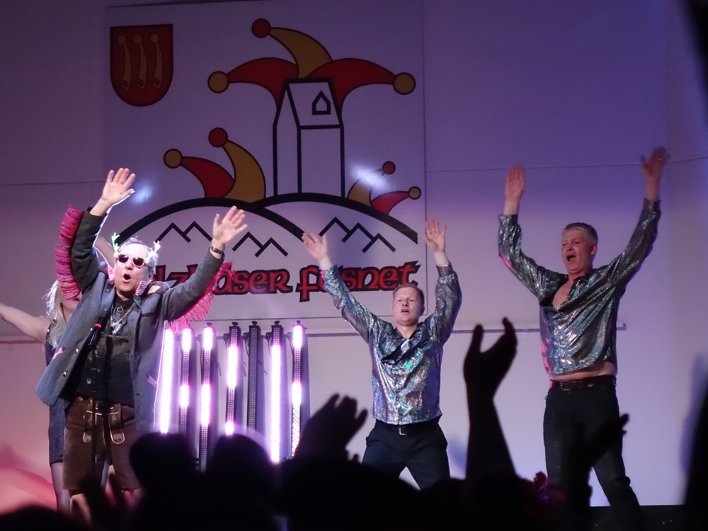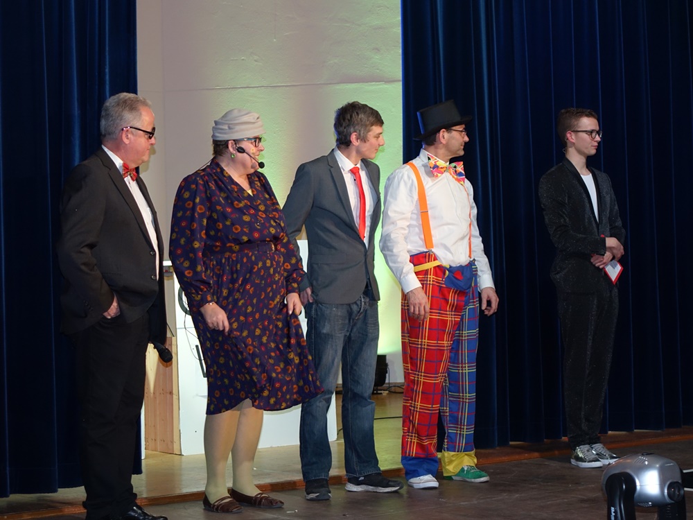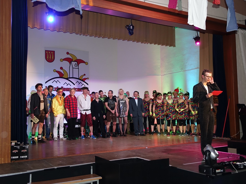 Politisch wurde es bei der Fasnetsamschdig Talkshow so ein Gschwätz, bei der auch der anwesende Bürgermeister Mursa und Pfarrer Kläger, die schönen Männer in der March, als „Teil des Chippendale-Quartets“ zu Ihren Ehren kamen. Donald Trump und nicht zuletzt die 30er-Zone in der March sorgten für so manchen Brüller in der Halle. Da blieb keine Auge Trocken. Erstmalig seit Jahren heizte der Musikverein Holzhausen mit Livemusik und Livegesang die Halle ein. Bürgermeister Mursa lies es sich dann auch nicht nehmen, die Polonaise anzuführen. Nach Ende des über dreistündigen Bühnenprogramms wurde bis tief in die Nacht zur fetzigen Musik von DJ Dennis abgezappelt und die Sektbar belagert.