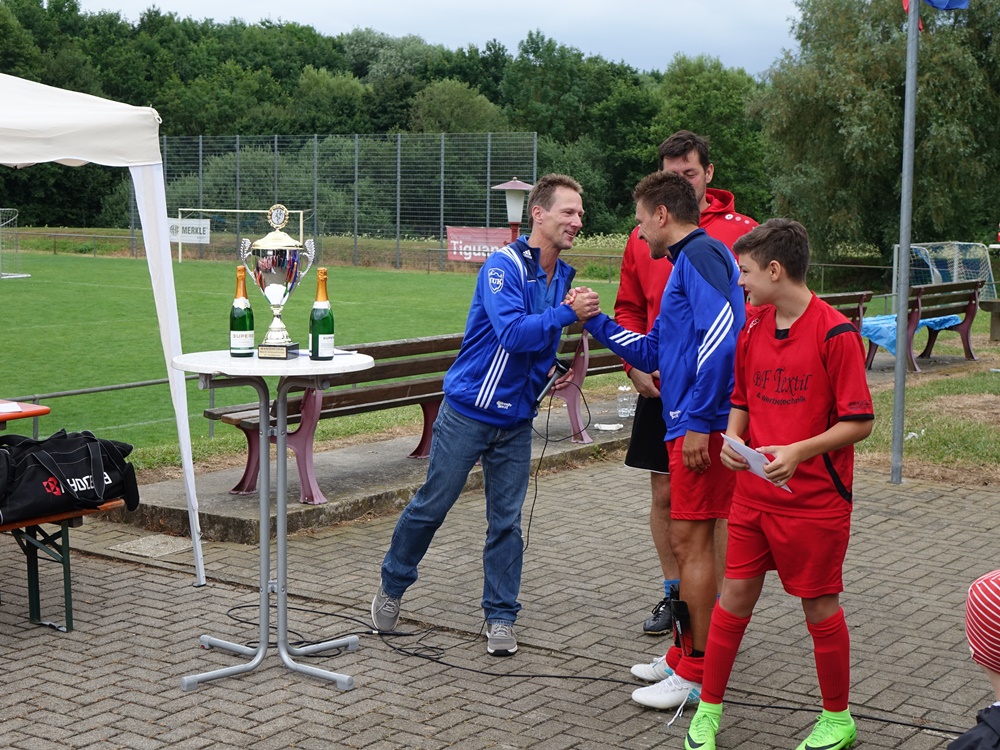Die Vereine mit den starken Volleyballern Marcus Müller und Stefan Roser, Mike Krämer vom Radfahrverein und Kurt Hettich von der Musik erarbeiteten sich einige Torchancen und siegten verdient mit 4:0 Toren. Spinnewieb Daniel Skomrow, Nico Karlin vom Kulturverein und Thorsten Buschmann vom Förderverein Kita und Schule konnten auf breite Fussballerfahrung zurückgreifen wie auch die SC H Vorstandsmitglieder Philipp Grüninger und Ralf Neugebauer.